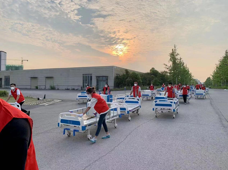 5月20日,金財(cái)集團(tuán)志愿者支援方艙醫(yī)院設(shè)備安裝工作